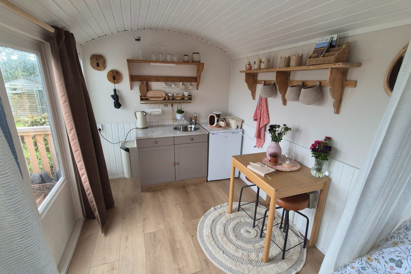 De sanitaire voorzieningen zijn op steenworp afstand te vinden achter de pipowagen. Zo combineer je de charme van een knusse pipowagen met het comfort en gemak van moderne voorzieningen.